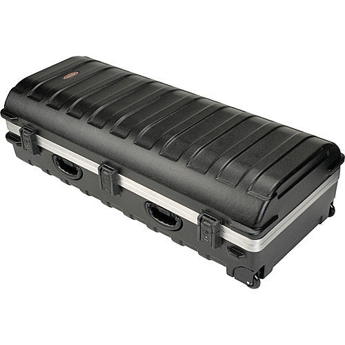 The SKB SKB-H5020W X-Large ATA Stand Case is carry and protect lighting, audio and sports equipment. The case is rotationally molded with slide-in cap design for compact shipping and storage. The computer design provides roto-molded indestructibility in a rolling stand and hardware case. There are in-line skate wheels installed for easy transport through busy airports and a molded-in sure-grip handle that balances the case while carrying or loading.