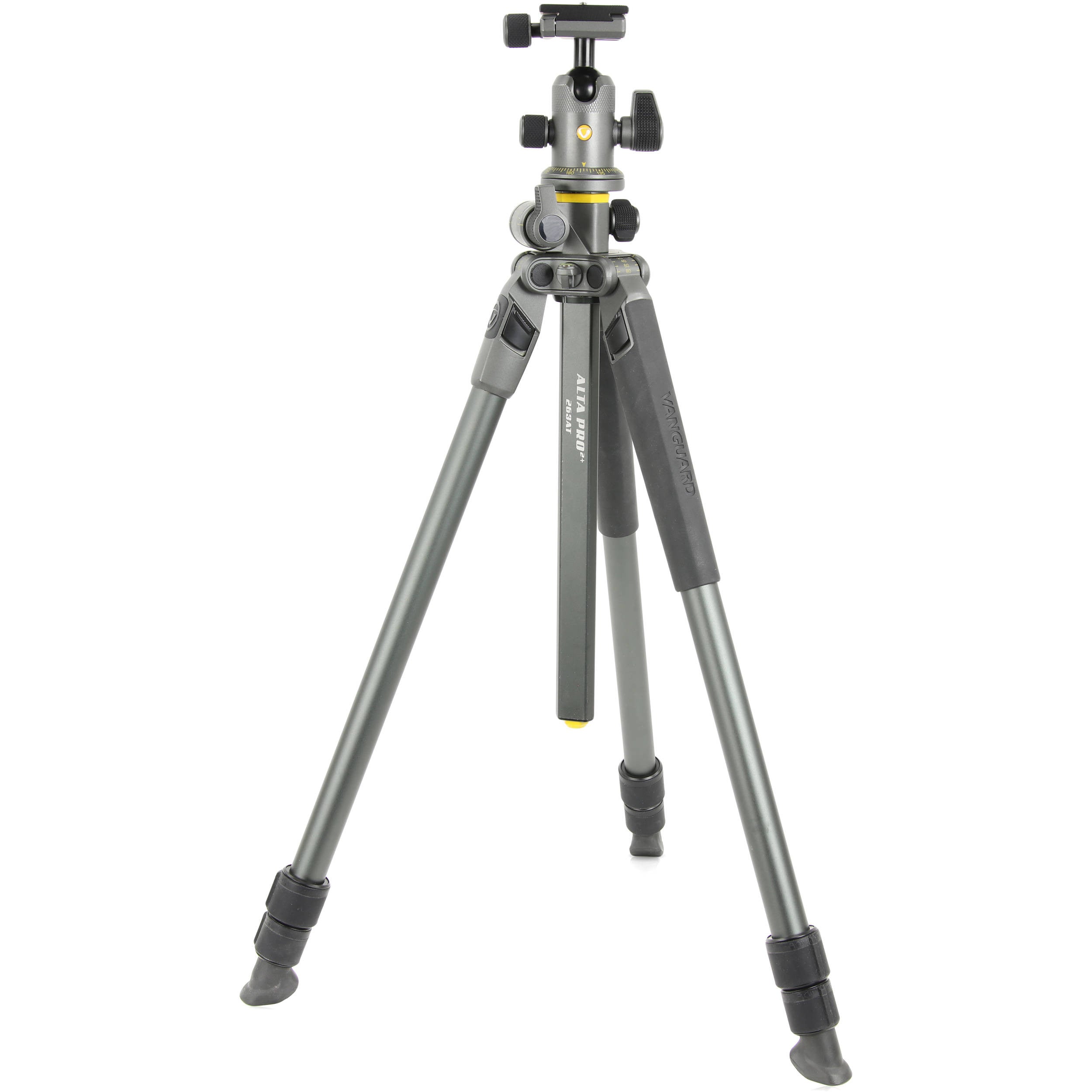 This Alta Pro 2+ 263AB100 Aluminum-Alloy Tripod Kit from Vanguard supports up to 15.4 lb, measures 29.0" when folded, and includes an Alta BH-100 Arca-type compatible ball head with QS-60 V2 Quick Release Plate. Each of its 3-section legs features an independent spread as well as twist locks for rapid deployment. Together, the three legs can be extended to obtain a maximum height of 56.8", or 68.2" with the center column fully raised. When the center column and the legs are retracted, the tripod kit stands at 27.8". Polymer covers on two of the legs provide a secure, comfortable grip while moving the tripod, and rubber feet help to enhance stability on a wide variety of surfaces.