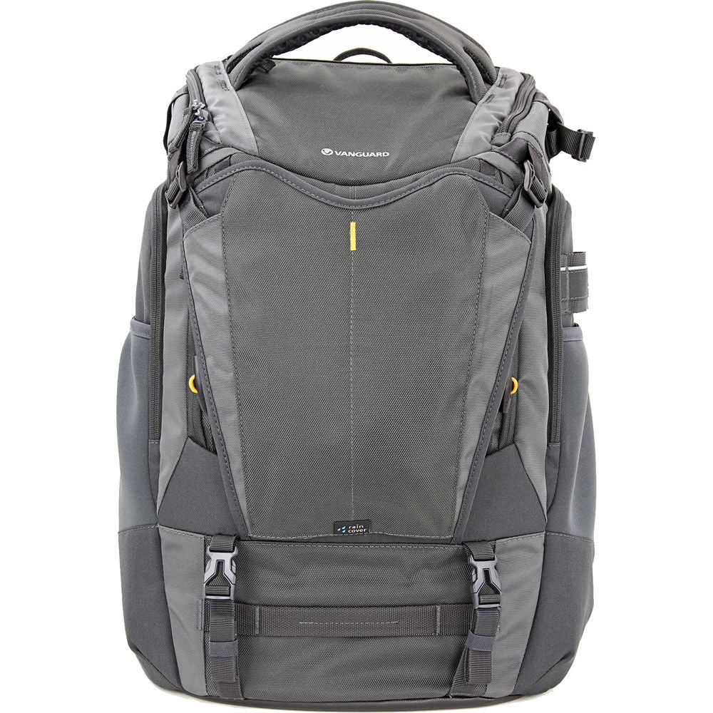 Store, protect, and transport one to two pro DSLRs, one with attached 300 f/2.8, six to eight extra lenses, flash, and related items, or a drone, accessories, and a pro DSLR with attached lens with the black Alta Sky 53 Camera Backpack from Vanguard . Inside the backpack is a padded sleeve for an up to 17" laptop or tablet. This well-appointed pack features interior and exterior pockets, and large water bottle side pockets. Locating gear in low light is easier thanks to the bright yellow interior lining and padded, touch-fastening dividers.