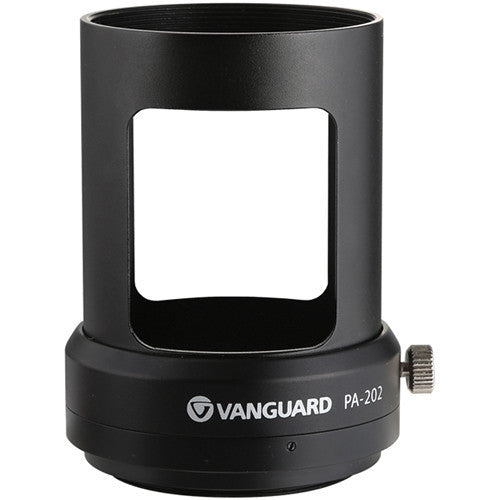 The PA-202 Digiscoping Adapter from Vanguard is a photo accessory enabling you to capture the image transmitted by an Endeavor HD and XF series spotting scope using an SLR camera. A thumbscrew at the top of the adapter secures the camera lens to the digiscoping adapter and helps maintain alignment with the spotting scope eyepiece.
