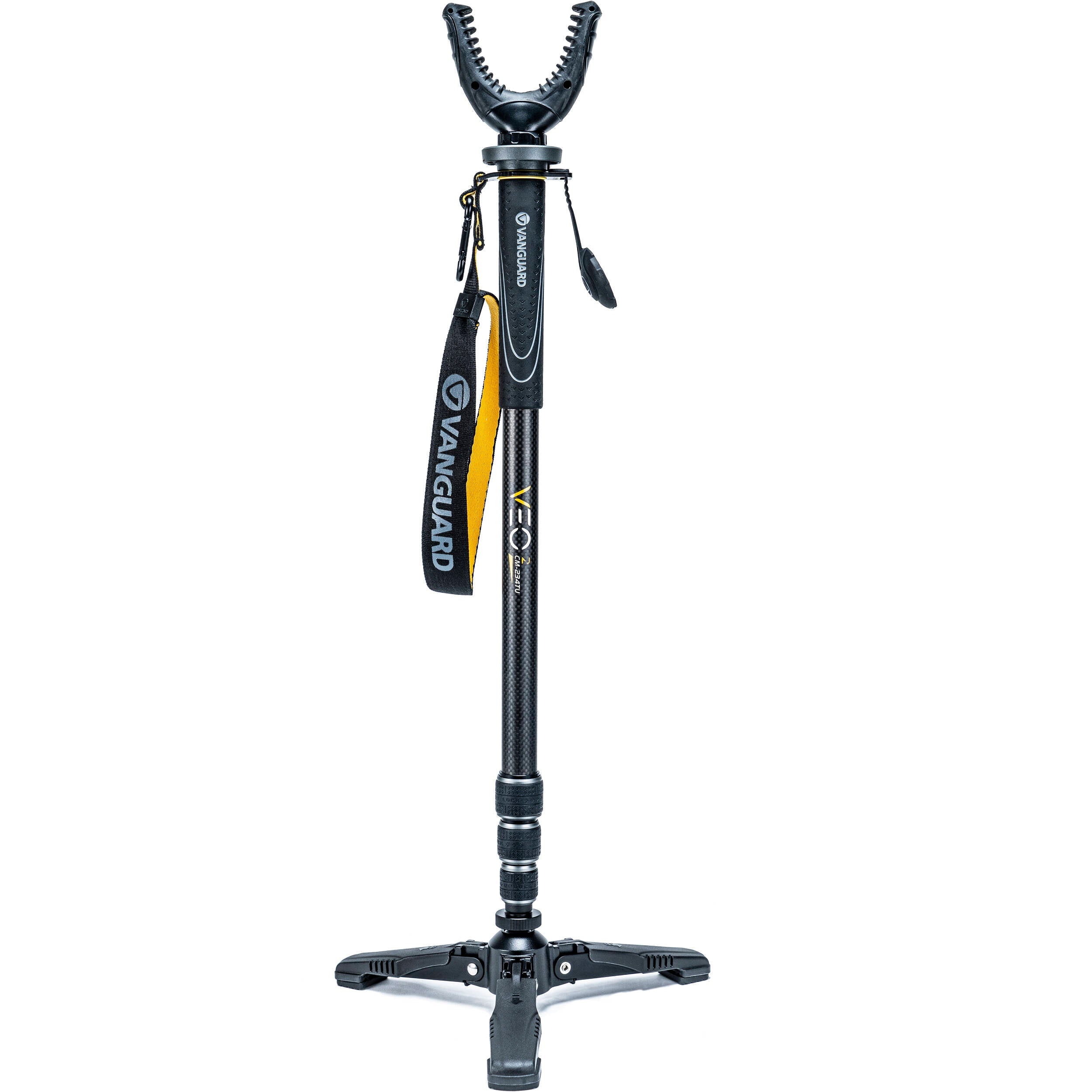 The VEO 2 CM-234TU Carbon Fiber Shooting Stick from Vanguard is a lightweight and adjustable gun support that is perfect for the outdoorsman who is concerned about versatility. Featuring 4-section lightweight carbon fiber legs, the VEO 2 CM-234TU's strong twist lock joints allow for easy carrying and maximized loading capacities. The VEO 2 shooting stick includes a U-yoke that rotates 360 degrees and has rubber fins to stabilize and secure hunting gear. The U-yoke can be removed to convert the shooting stick into a fully usable monopod with a maximum loading capacity of 11 lbs. When paired with a separately-available Vanguard photo or video head, VEO is perfect for supporting spotting scopes, cameras, and any other mountable gear. The anti-slip rubber feet easily fold up and lock in seconds making sure you never miss the action. VEO 2 CM-234TU quietly and quickly extends to 62.6" and folds down to 24.4", allowing complete adaptability in the field. In addition, the shooting stick can be used as a walking stick, with the hand strap, carabineer, and soft rubber handle providing a comfortable grip.
