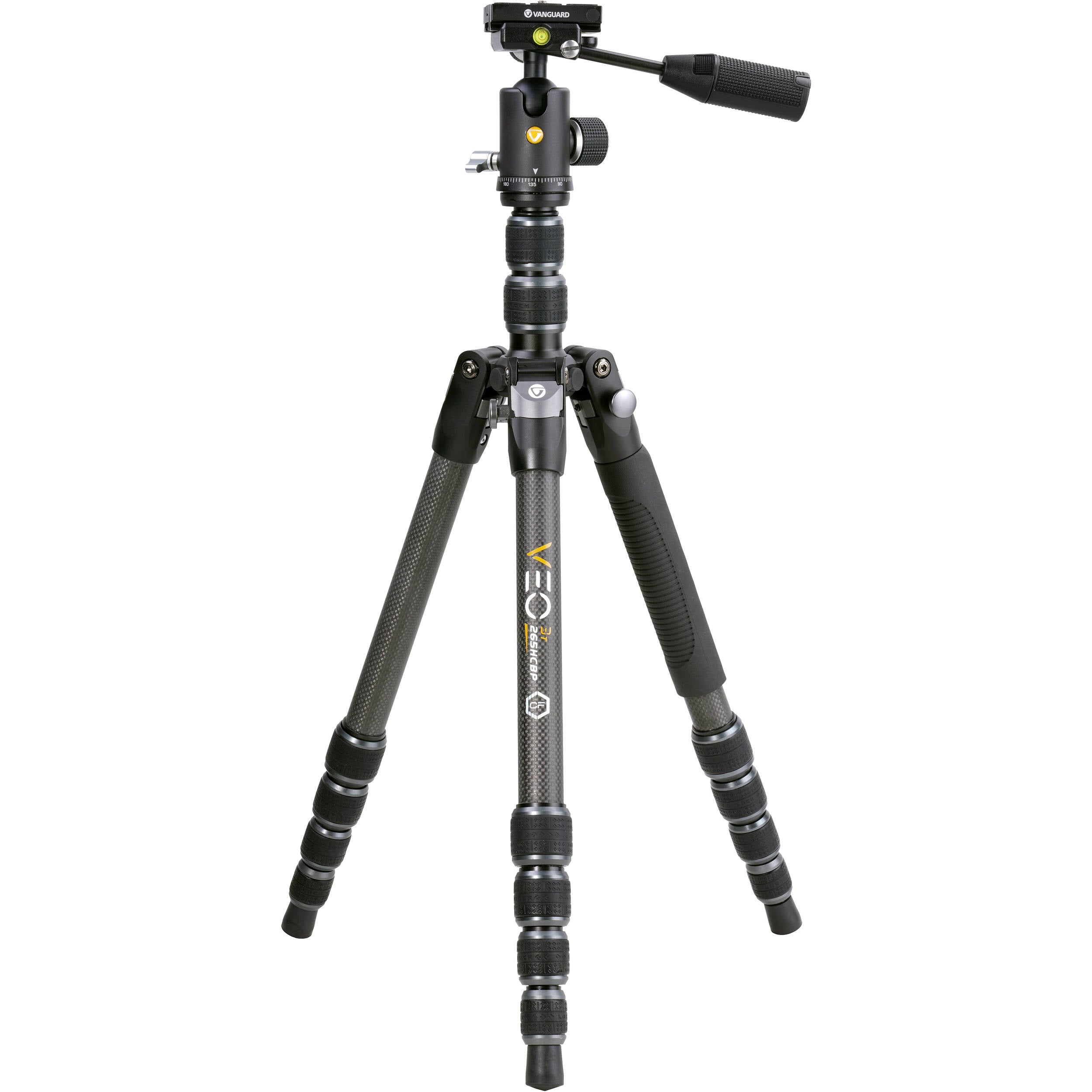 The VEO 3T 265HCBP Carbon Fiber Travel Tripod from Vanguard is designed as a solution for bloggers, streamers, photographers, and videographers on the go. It provides maximum stability for streaming on social media or capturing wildlife, street, and travel photography. It comes equipped with an innovative and versatile VEO 2 BP-120T Arca-type-compatible ball/pan head with a removable panhandle, making it ideal for photographers who also want options for video. To help get the most from a smartphone, the VEO 3T includes a QS-72T quick release plate that changes from a traditional plate to a smartphone holder, accommodating devices up to 3.33" wide, plus a convenient Bluetooth remote control trigger that is compatible with IOS or Android phones. When in smartphone mode, the QS-72T quick release plate includes a cold shoe mount for an accessory such as a lighting unit or microphone, as well as an additional 1/4"-20 thread hole on the side to add even more accessories.