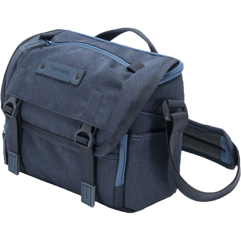 Store, transport, and protect your mirrorless camera, 2-3 lenses, a flash, and related accessories with the VEO RANGE 21M Small Messenger Camera Bag in navy blue from Vanguard . The bag features an inner padded sleeve for a 7" mini tablet, padded interior touch-fastening dividers, and multiple storage pockets. Photographers will appreciate the tripod straps on the front of the bag. Carry the bag with the padded top handle or the wide adjustable shoulder strap. A full rain cover is included.